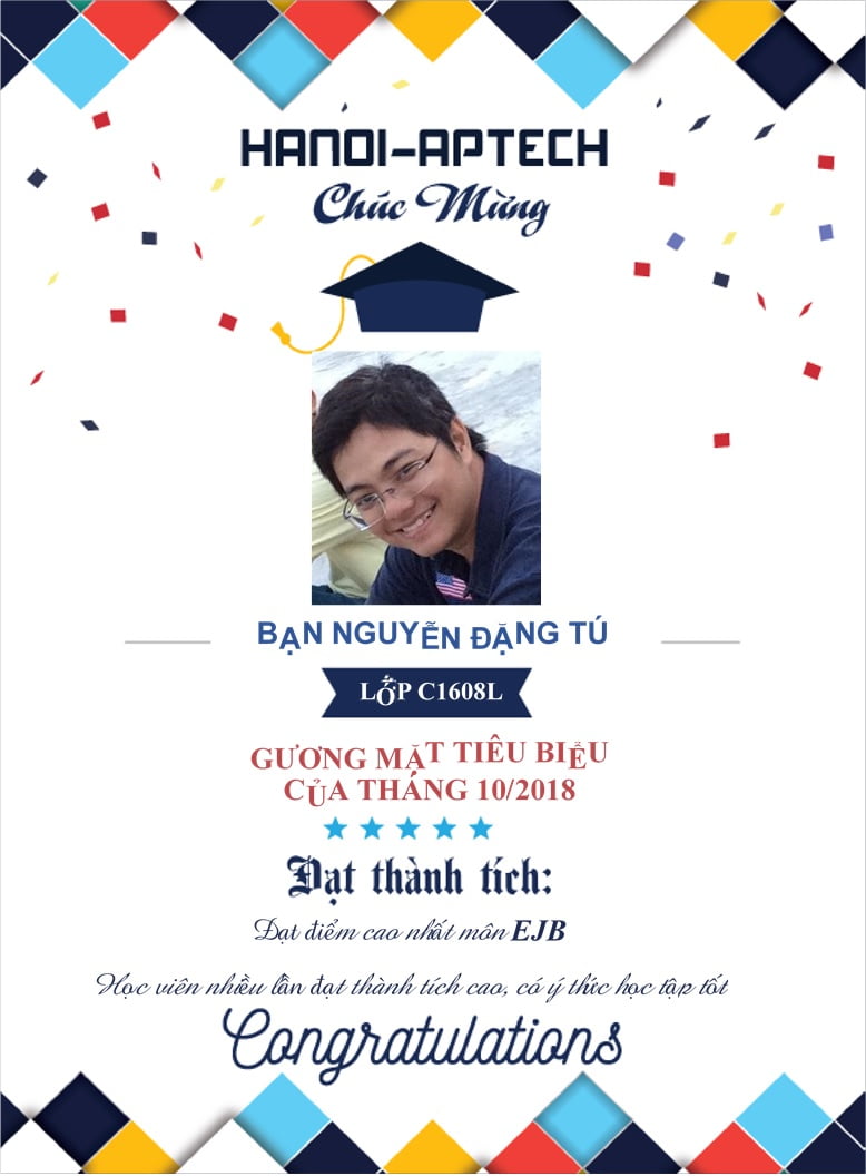 Đặc biệt: đây là lần thứ 2 liên tiếp bạn Tú được bầu chọn là học viên tiêu biểu hàng tháng của Trường Hanoi-Aptech.