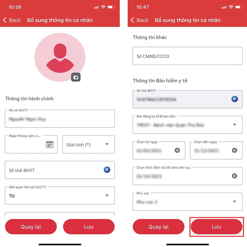 Bước thứ hai người dùng vào các trường kê khai thông tin để đăng kí tài khoản. Sau khi hoàn tất việc lưu trữ và gửi đi thông tin đăng kí người dùng sẽ nhận được mã QR Code cá nhân từ hệ thống gửi về, gọi là Mã sổ sức khỏe.